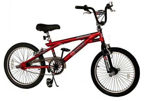 20-inch freestyle bike for ages eight and older with 4 axle pegs for trick-type driving.Reinforced high-ten-steel freestyle frame constructed for rugged performance.Front alloy caliper brakes and rear alloy U-brakes for fast stopping.360-degree rotors for performing professional-style handlebar spinning.Comfortable padded saddle; 20 x 2.1-inch tires for exceptional traction. Let your creativity shine with the Razor Sharp 20-inch freestyle bike. Outfitted with a reinforced high-ten-steel freestyle body that's ruggedly constructed for essentially the most difficult calls for, along with 360-degree handlebar rotors, the bike permits you to do all the trick-type riding and handlebar spinning that the professionals do, but for a fraction of the price. Features embody a forged single-piece crank, entrance alloy caliper brakes and rear alloy U-brakes for highly effective and dependable stopping, a padded Razor jumper saddle for a comfy experience, and four8-spoke alloy rims wearing 20-by-2.. ... Read more Razor Sharp Freestly Bike (20-Inch Wheels)